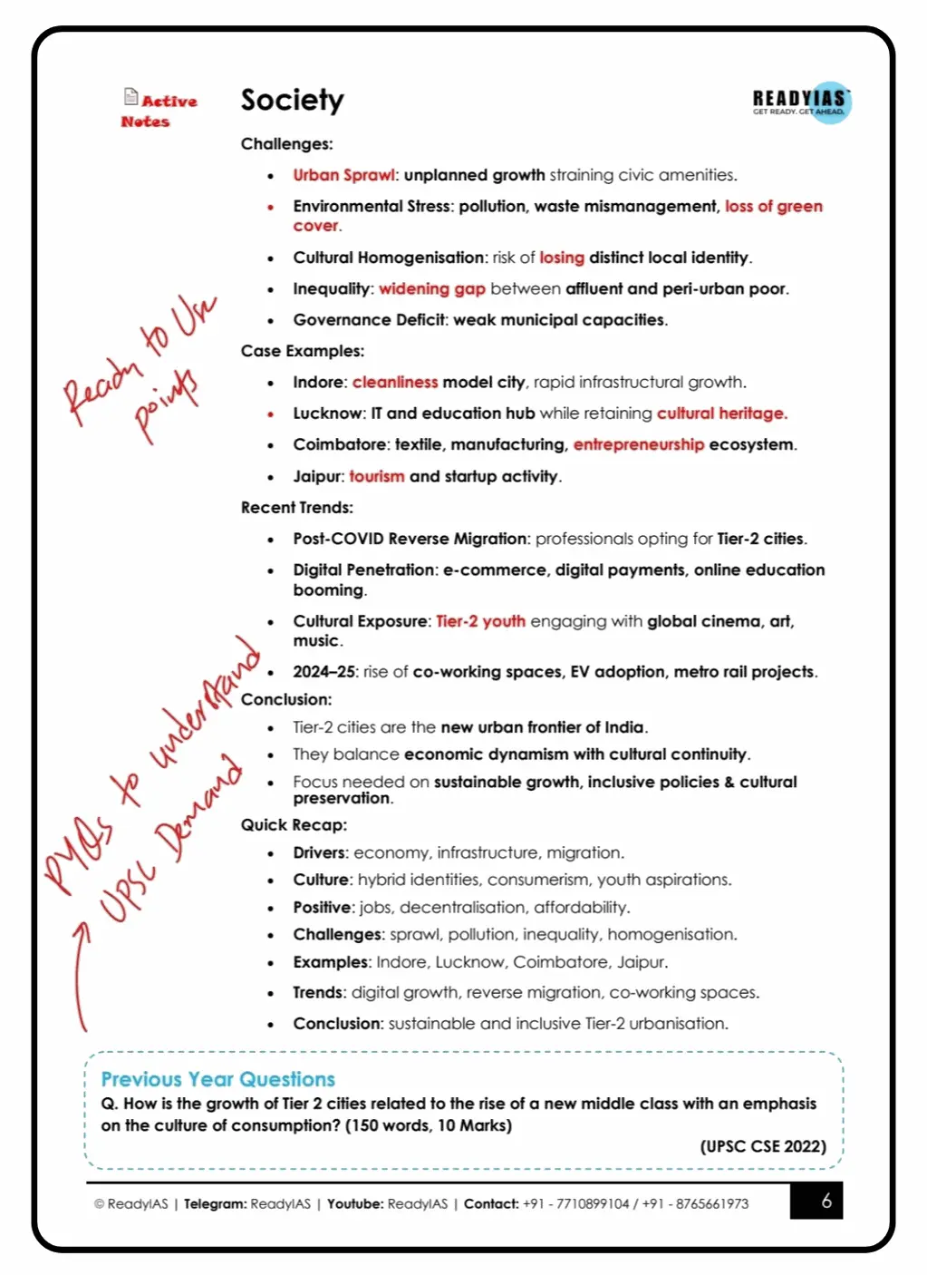 Unlike static PDFs, Active PYQs Notes are topic-wise & syllabus-mapped, Include model frameworks, flowcharts and keywords, Provide space for value addition, Are regularly updated (no need to buy again)